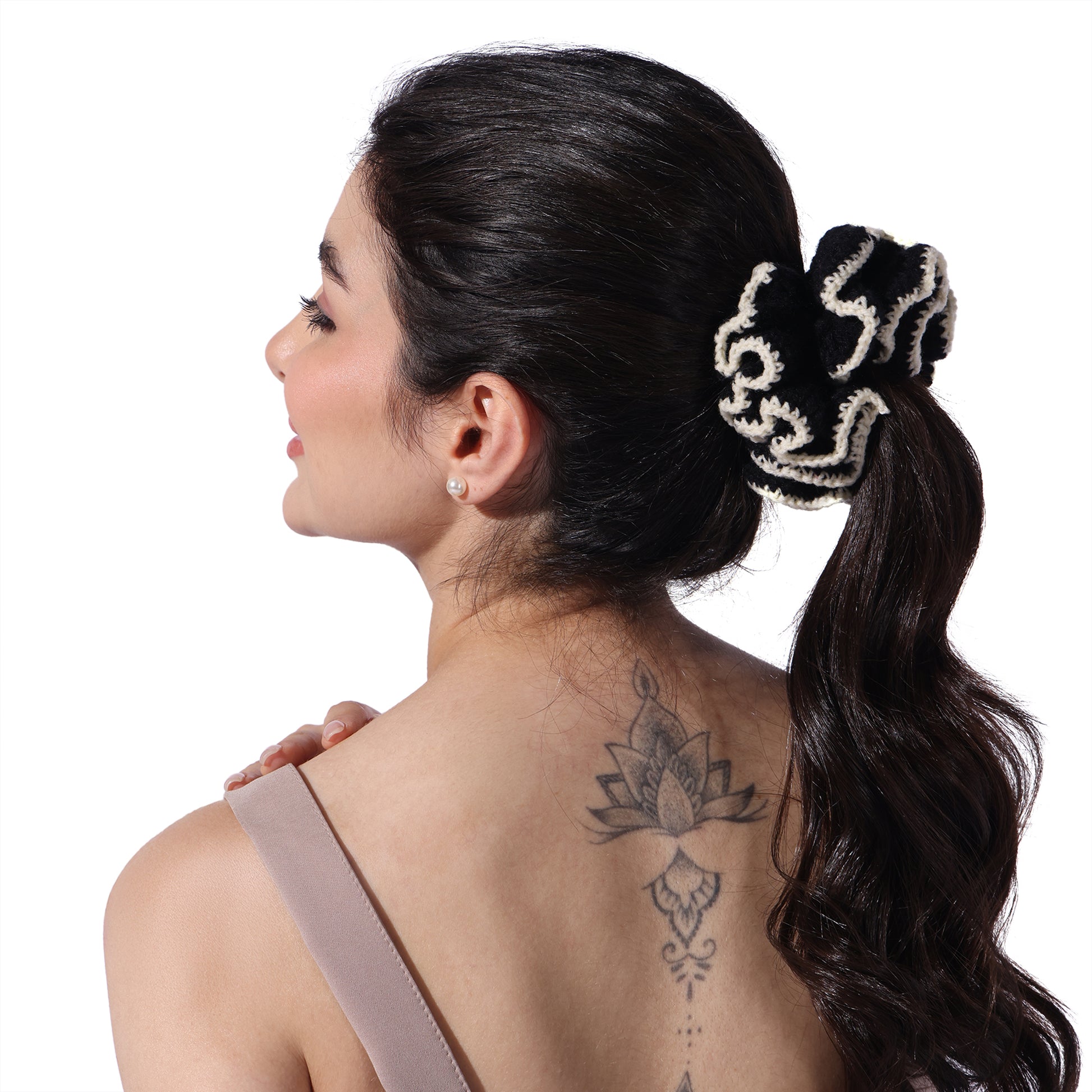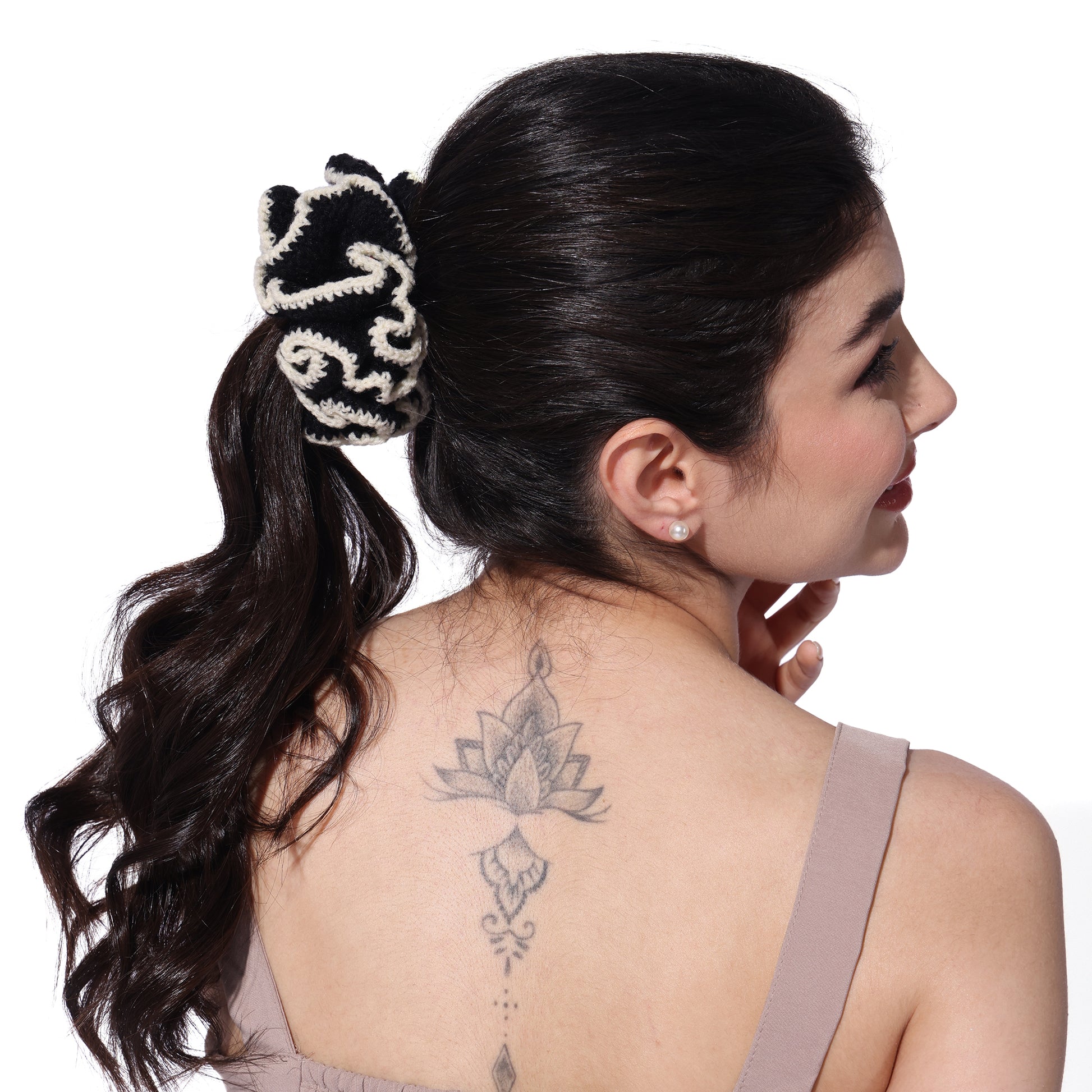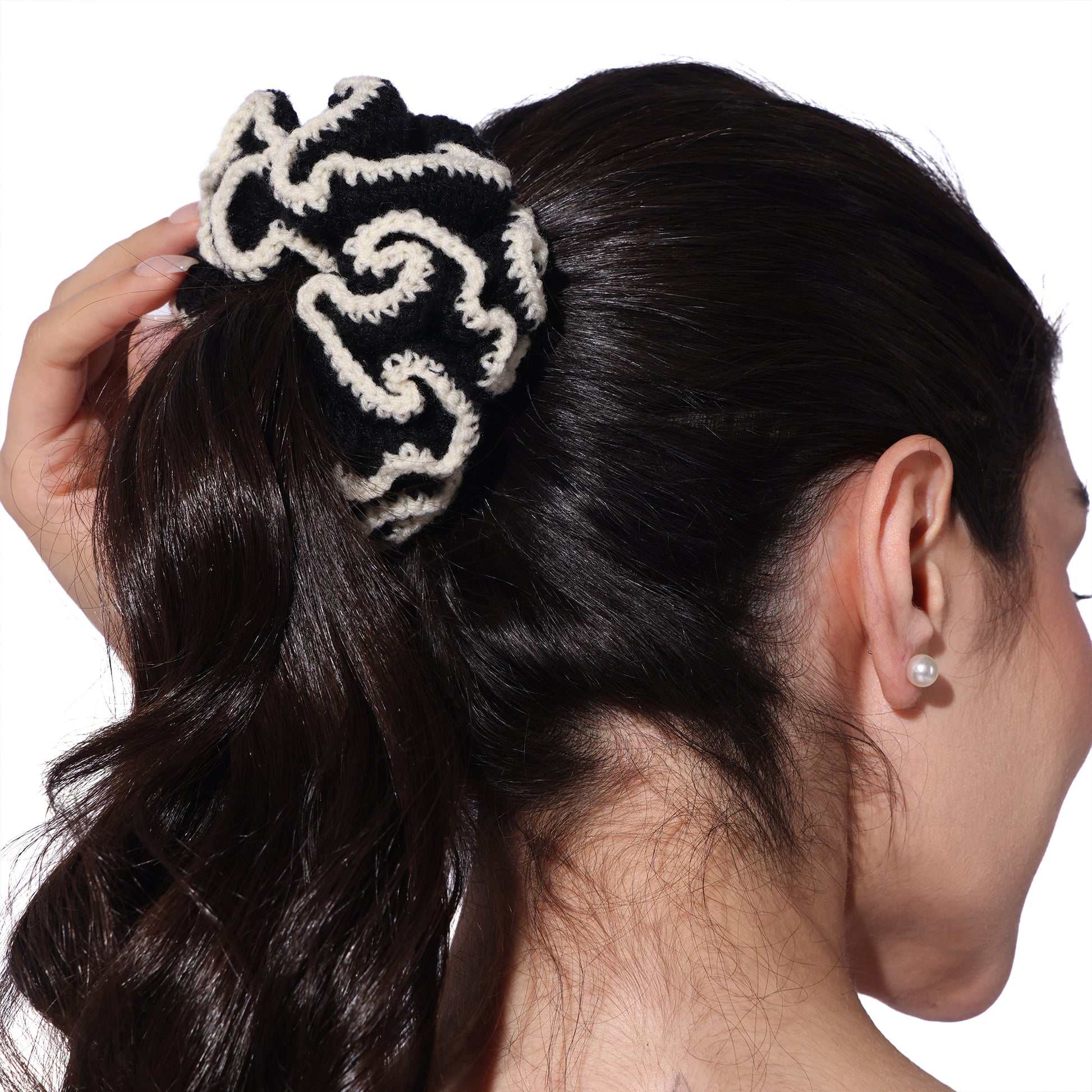 Details : Add a touch of charm and comfort to your hair game with our Crochet Handmade Scrunchie – a delightful blend of cute aesthetics and everyday function. Lovingly handcrafted with soft yarn, this scrunchie is gentle on your hair, prevents breakage, and looks oh-so-pretty on your wrist too!. Whether you're tying up a bun or accessorizing your braid, this scrunchie adds that perfect boho vibe to your look.