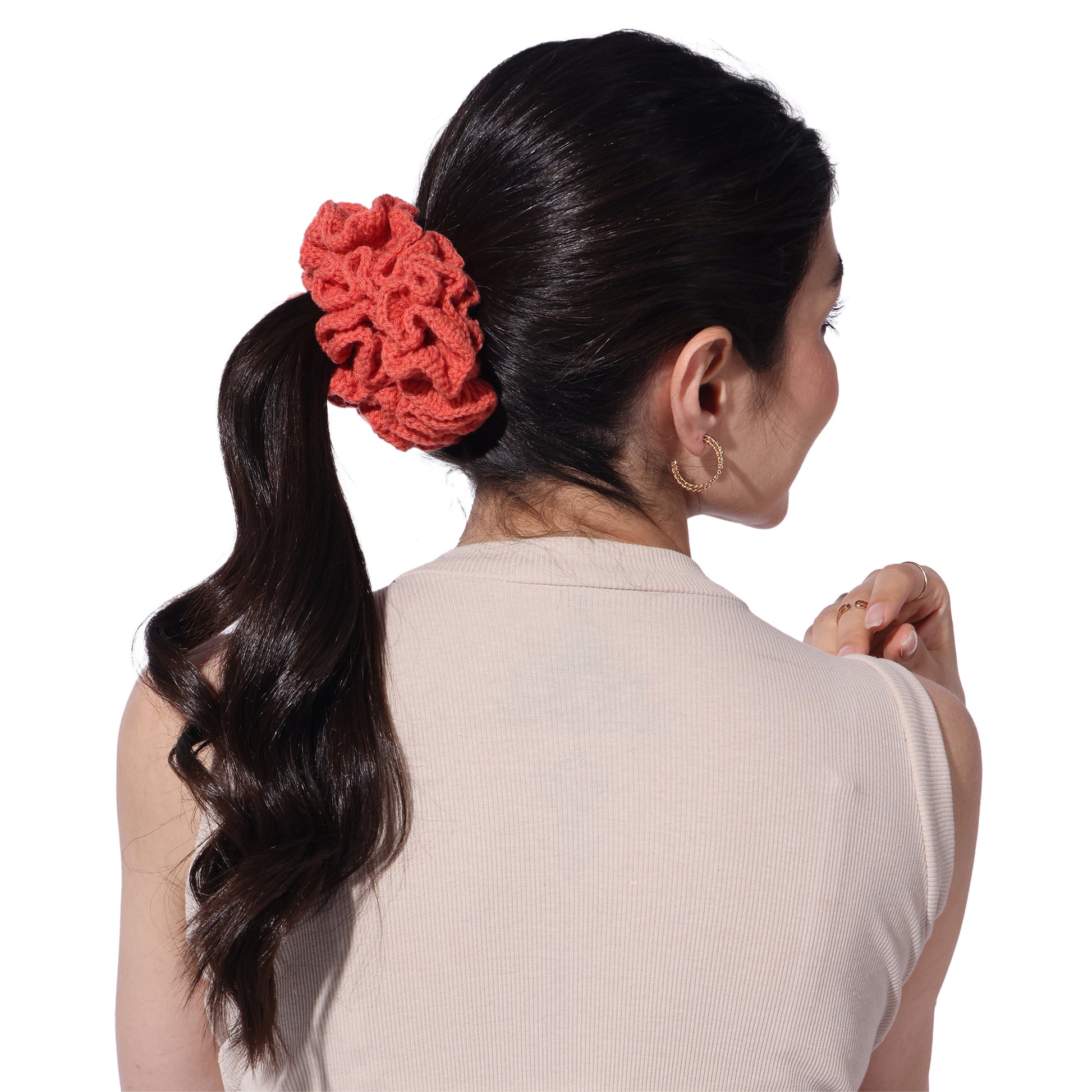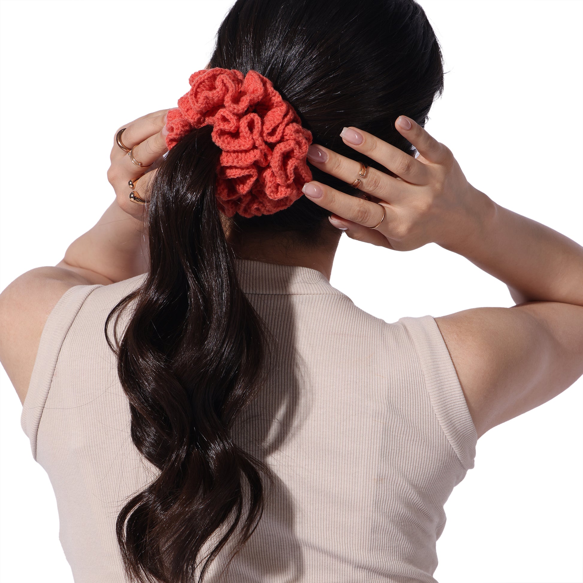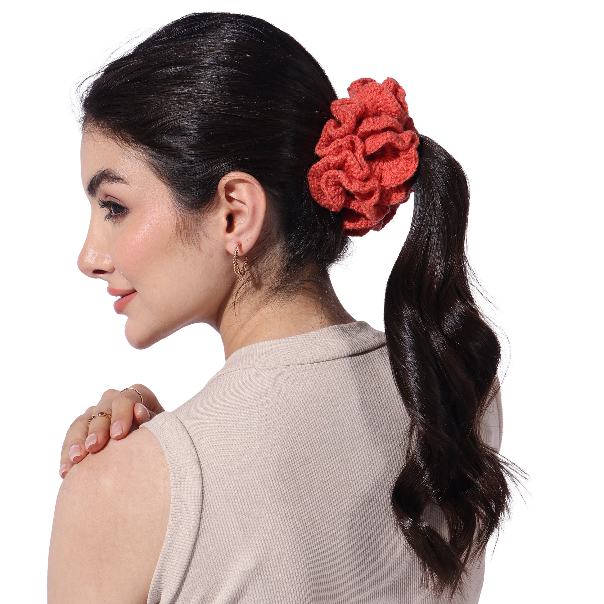 Details : Add a touch of charm and comfort to your hair game with our Crochet Handmade Scrunchie – a delightful blend of cute aesthetics and everyday function. Lovingly handcrafted with soft yarn, this scrunchie is gentle on your hair, prevents breakage, and looks oh-so-pretty on your wrist too!. Whether you're tying up a bun or accessorizing your braid, this scrunchie adds that perfect boho vibe to your look.