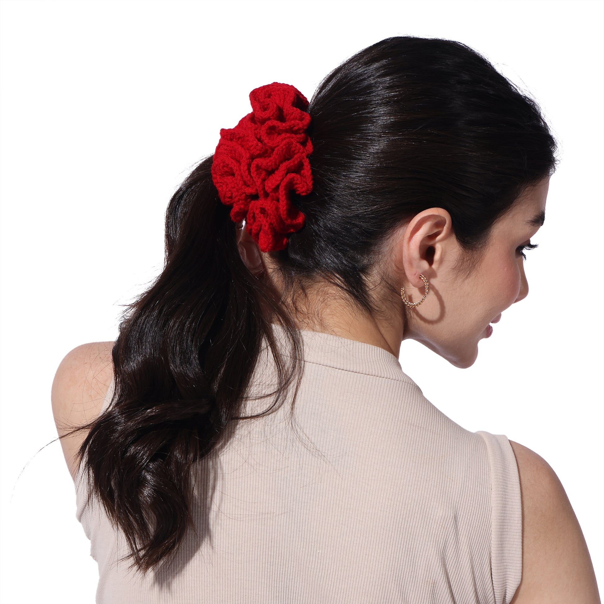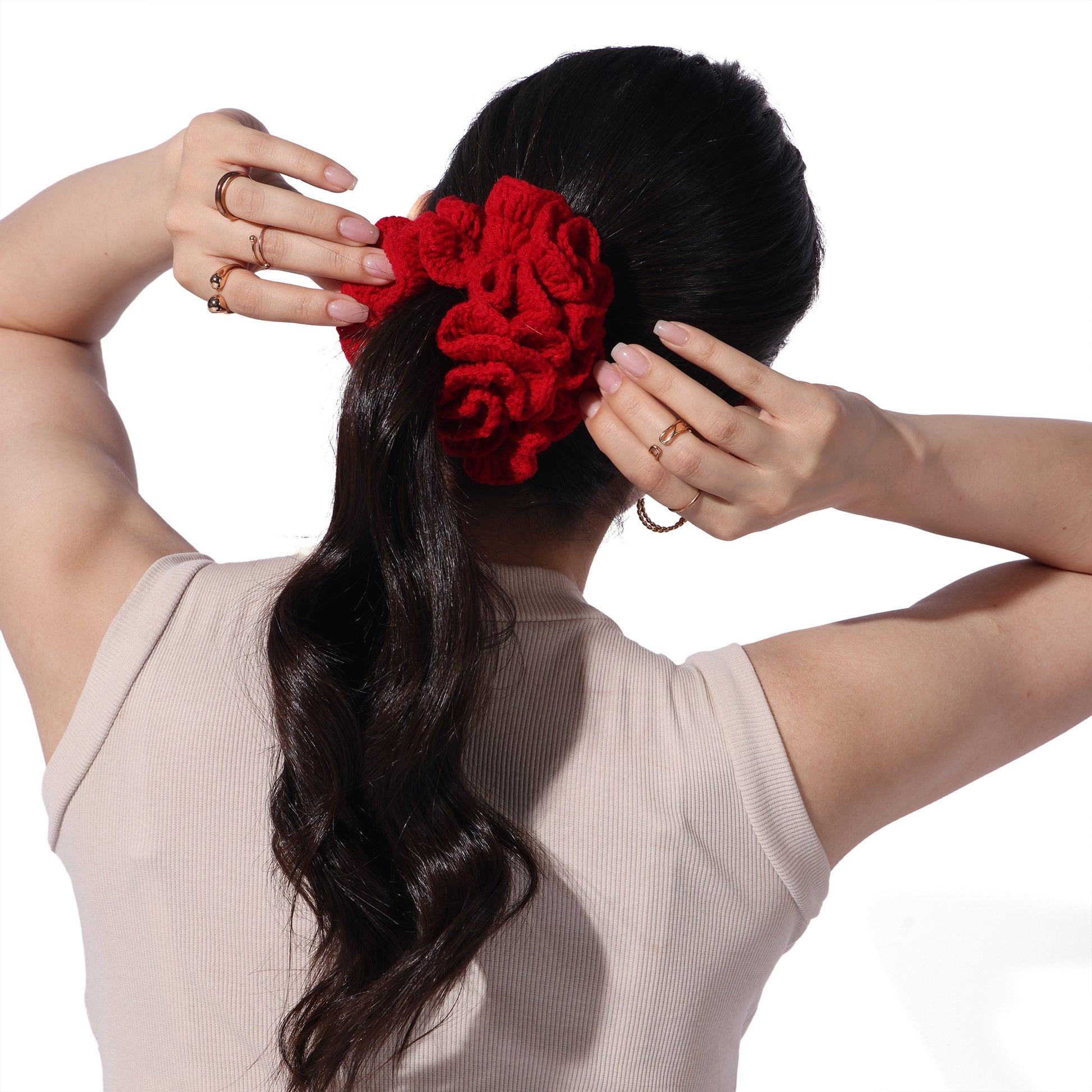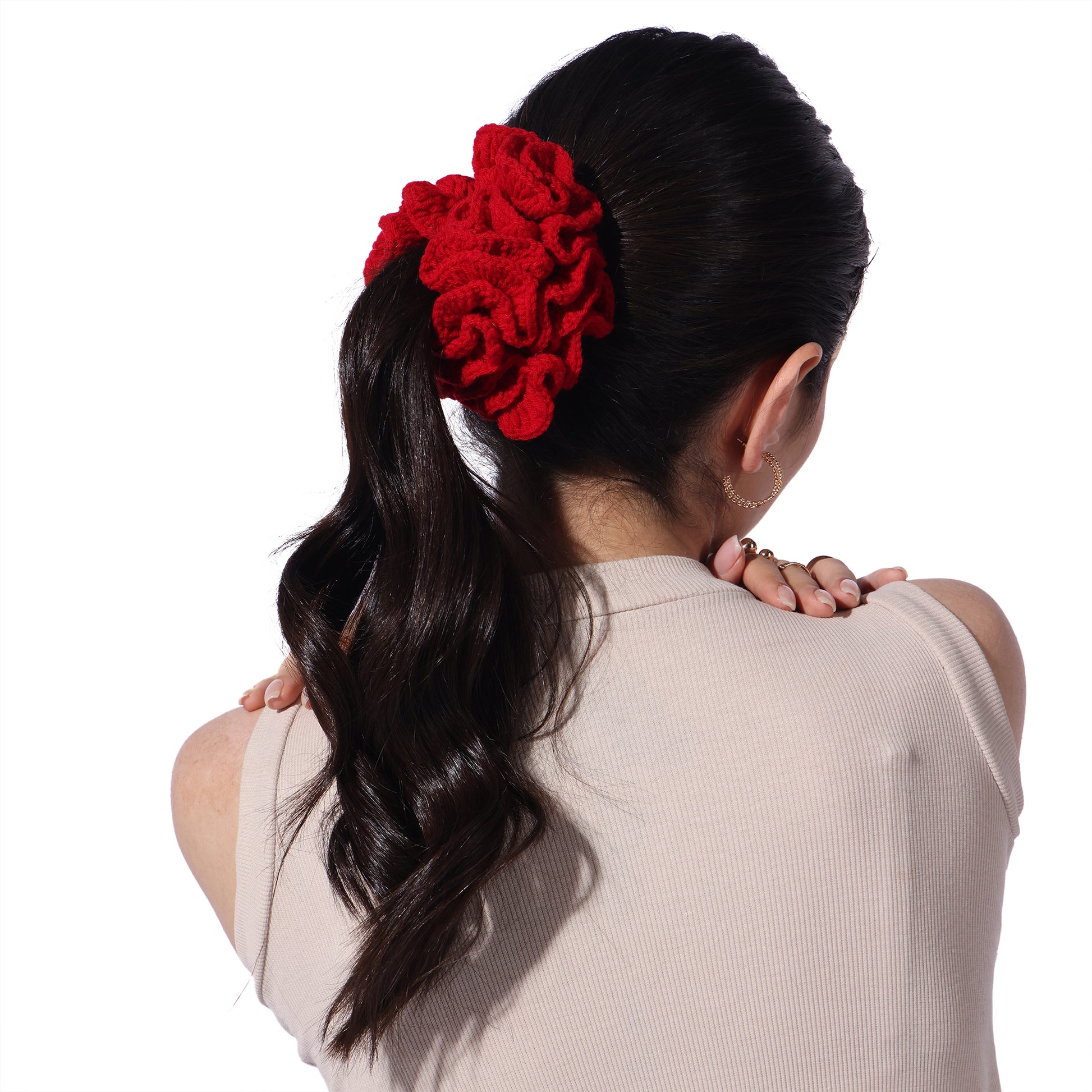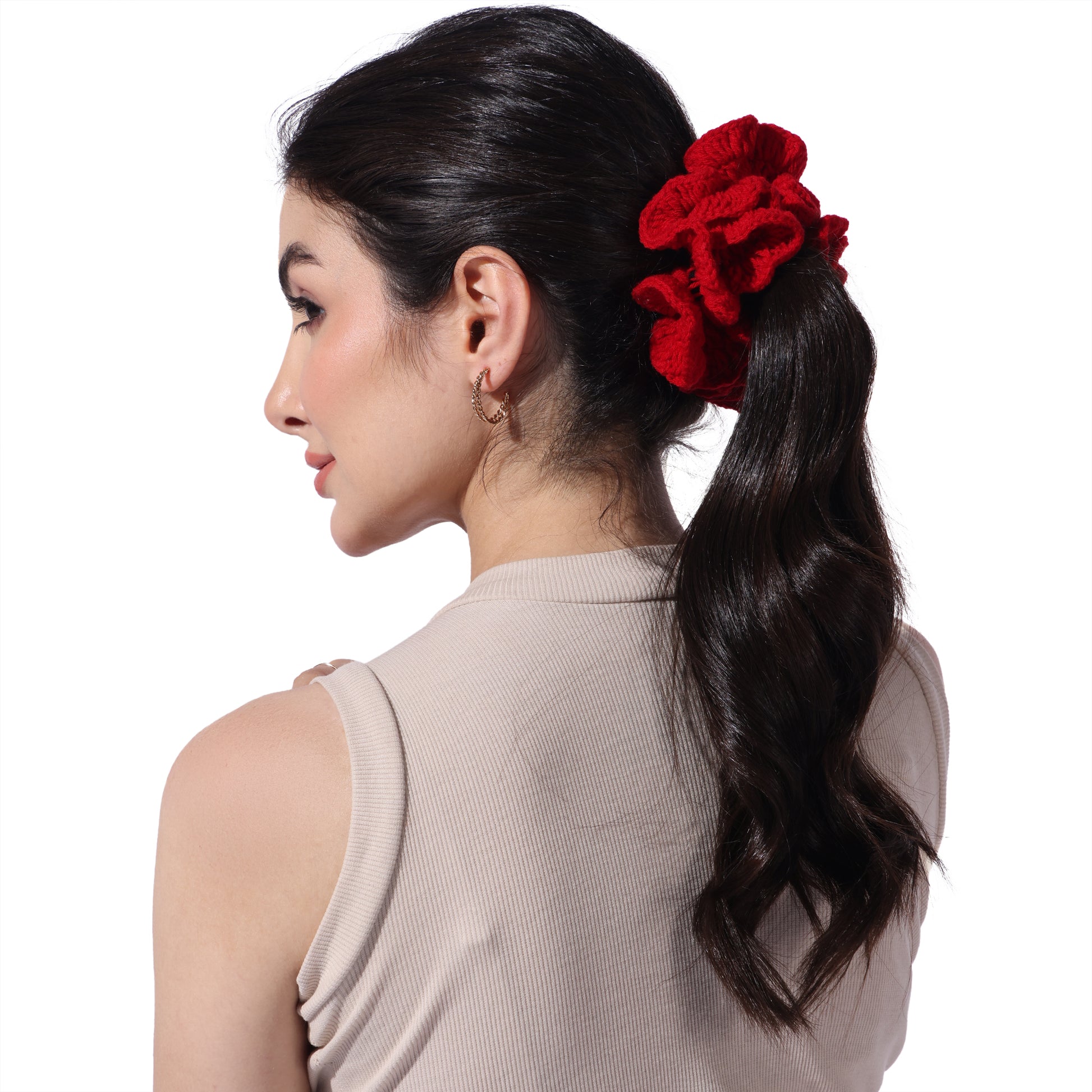 Details : Add a touch of charm and comfort to your hair game with our Crochet Handmade Scrunchie – a delightful blend of cute aesthetics and everyday function. Lovingly handcrafted with soft yarn, this scrunchie is gentle on your hair, prevents breakage, and looks oh-so-pretty on your wrist too!. Whether you're tying up a bun or accessorizing your braid, this scrunchie adds that perfect boho vibe to your look.