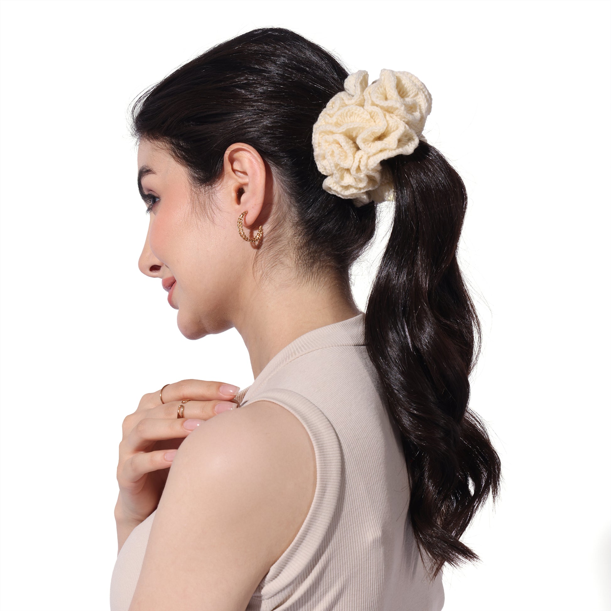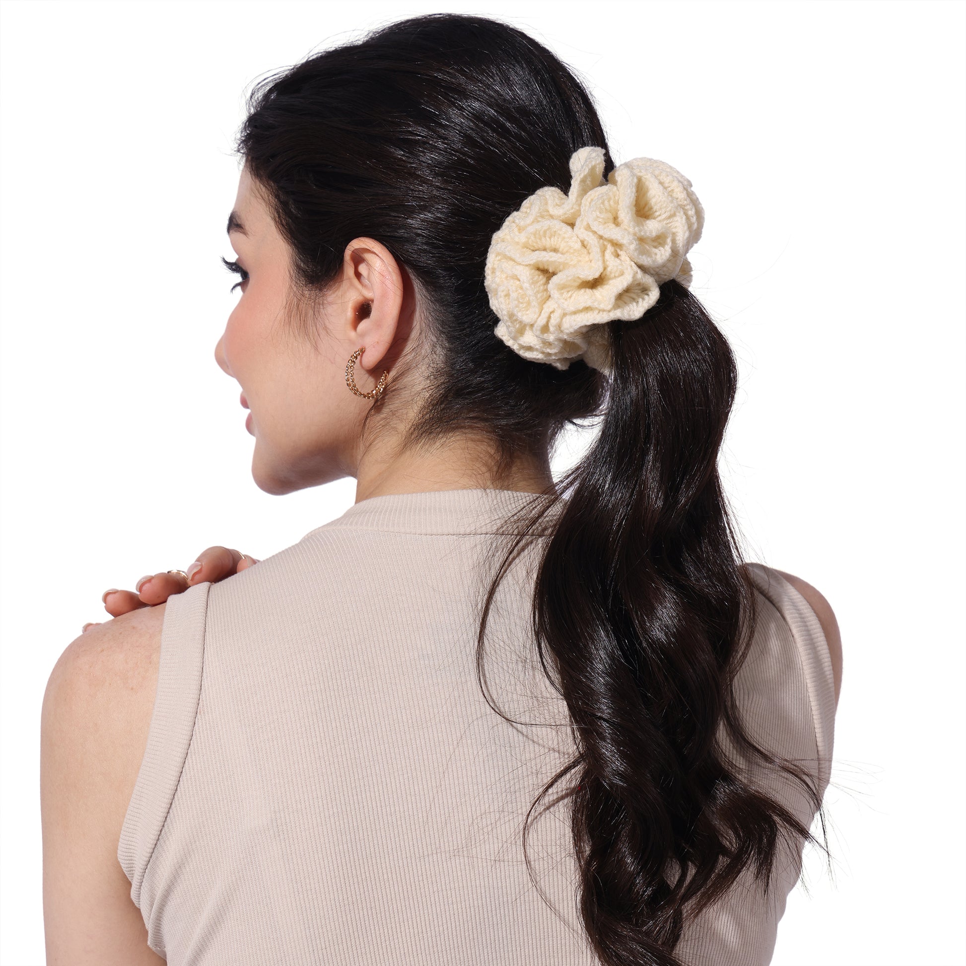 Details : Add a touch of charm and comfort to your hair game with our Crochet Handmade Scrunchie – a delightful blend of cute aesthetics and everyday function. Lovingly handcrafted with soft yarn, this scrunchie is gentle on your hair, prevents breakage, and looks oh-so-pretty on your wrist too!. Whether you're tying up a bun or accessorizing your braid, this scrunchie adds that perfect boho vibe to your look.