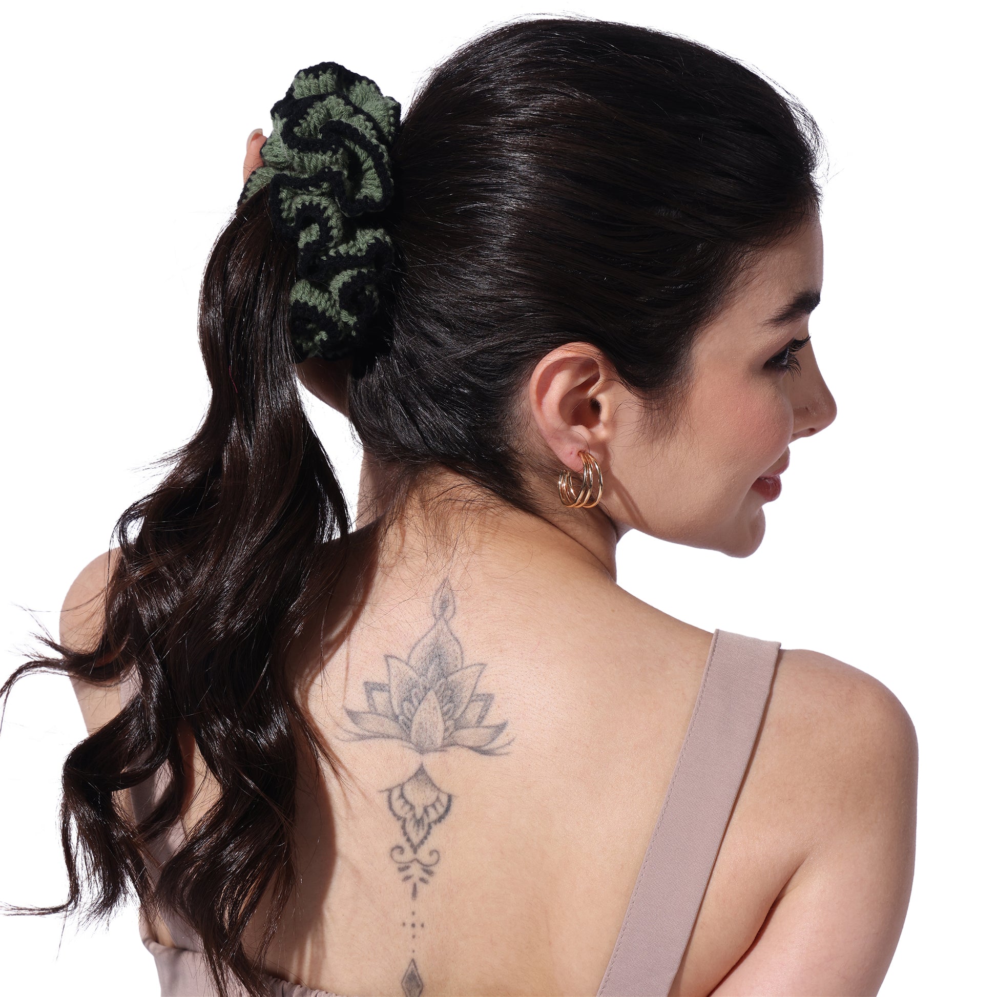 Details : Add a touch of charm and comfort to your hair game with our Crochet Handmade Scrunchie – a delightful blend of cute aesthetics and everyday function. Lovingly handcrafted with soft yarn, this scrunchie is gentle on your hair, prevents breakage, and looks oh-so-pretty on your wrist too!. Whether you're tying up a bun or accessorizing your braid, this scrunchie adds that perfect boho vibe to your look.