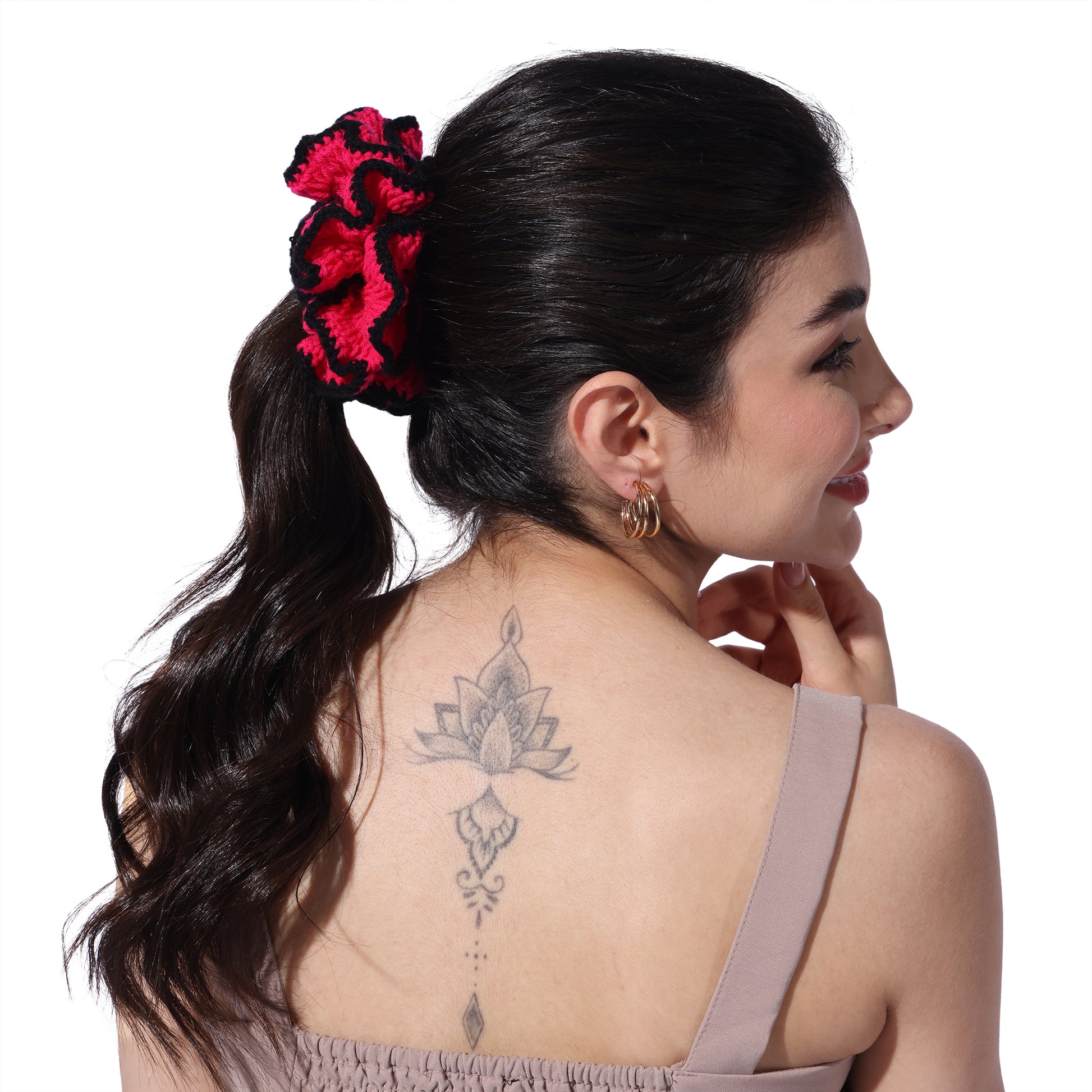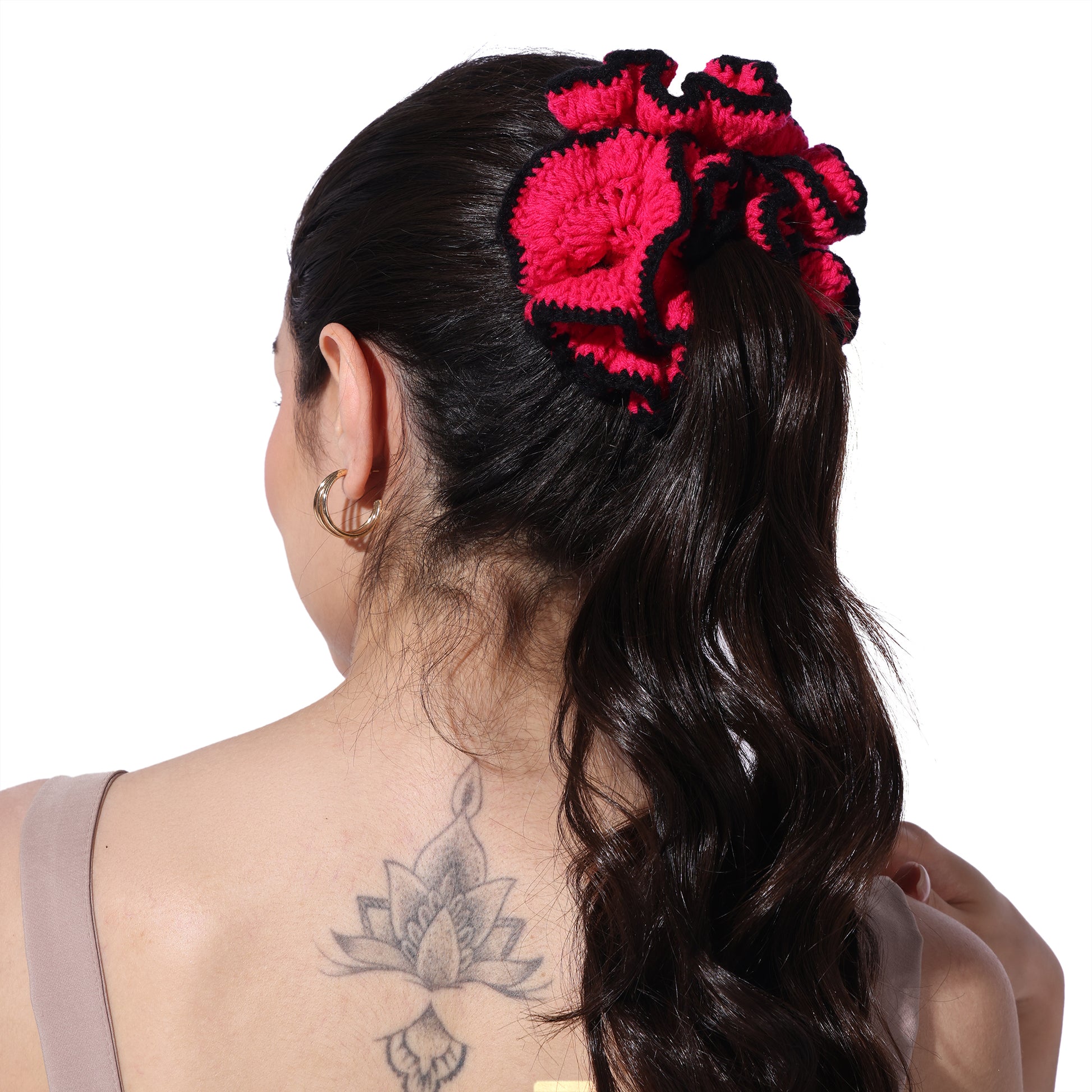 Details : Add a touch of charm and comfort to your hair game with our Crochet Handmade Scrunchie – a delightful blend of cute aesthetics and everyday function. Lovingly handcrafted with soft yarn, this scrunchie is gentle on your hair, prevents breakage, and looks oh-so-pretty on your wrist too!. Whether you're tying up a bun or accessorizing your braid, this scrunchie adds that perfect boho vibe to your look.