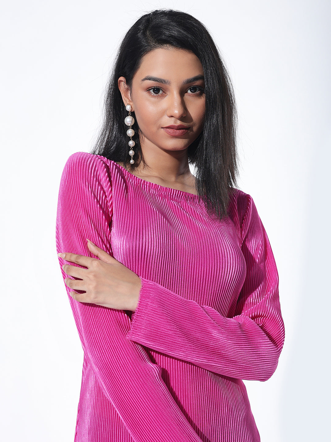 Handwash Cold (For pleated fabrics, avoid direct ironing; use a steam iron gently over fabric without touching. Preserve pleats by ironing inside out with a protective cloth.)