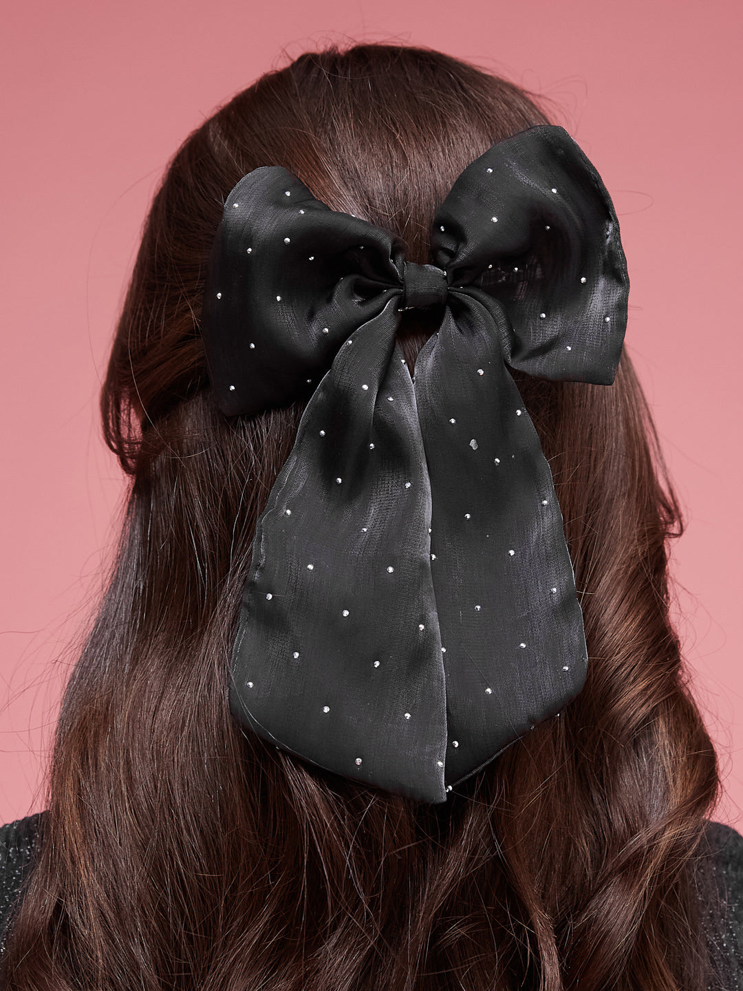 Elegant Black Sheer Hair Bow with Sparkling Rhinestones