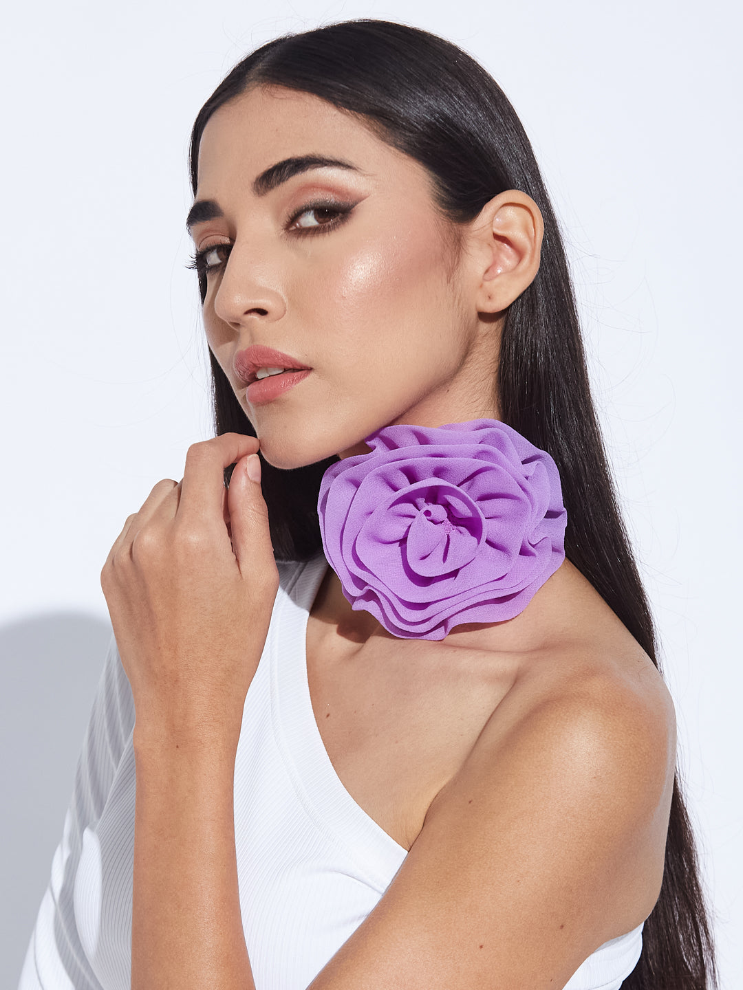 Chic satin flower chokers: Meticulously crafted for the modern trendsetter. Our floral charm adds a graceful touch to any look. A must-have statement piece for your jewelry collection. Discover elegance redefined.
